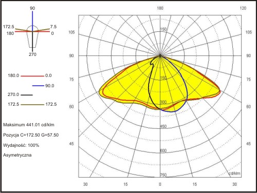 - Asymetryczny system optyki i rozsyłu światła (dedykowane do oświetlenia dróg).